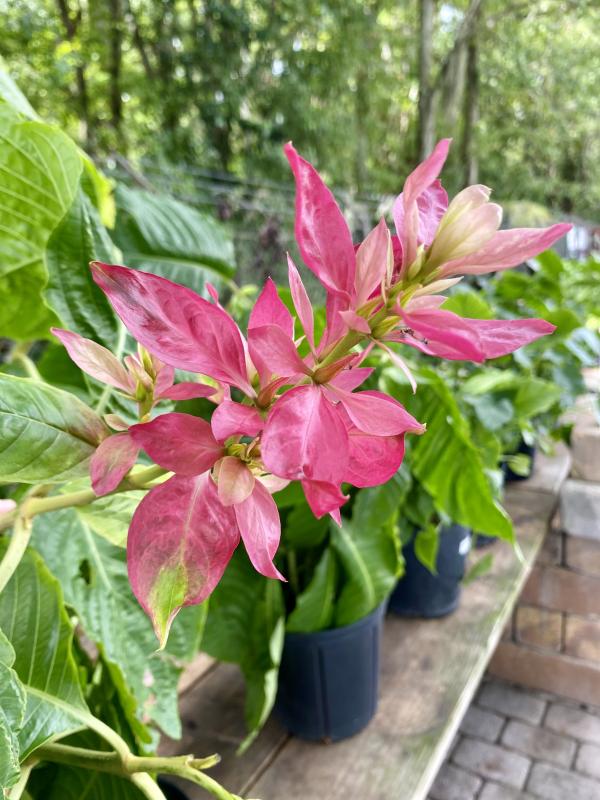 | Inflorescence | Erect spikes of red bracts with tiny white flowers inside |