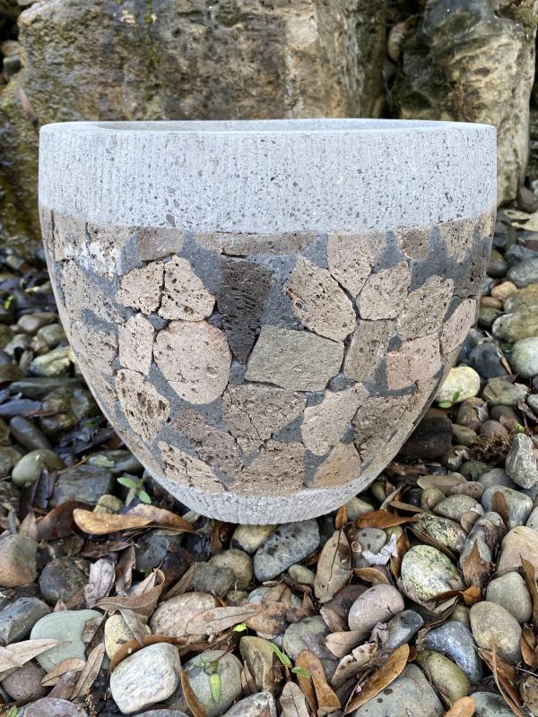 Pumice Stone Pot Grey Cement Top 11.8" x 11.8" x 11"