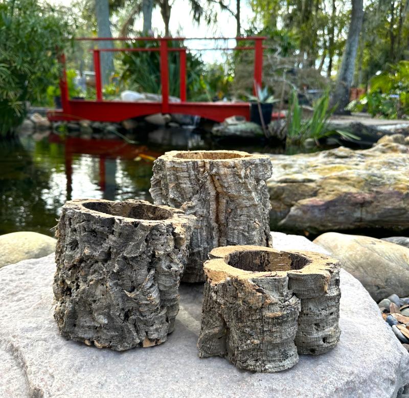 Made from trees that go on living! This unique virgin cork bark planter is composed of natural cork bark. Cork bark is harvested from the cork tree time and time again without harming the tree. The cork bark used for these planters is in its rough, natural form, and come from the tree's very first harvest. The texture of the cork used in these planters gives the planters a natural and unique look. These cork bark planters are natural and non-toxic ensuring a healthy environment for your plants.