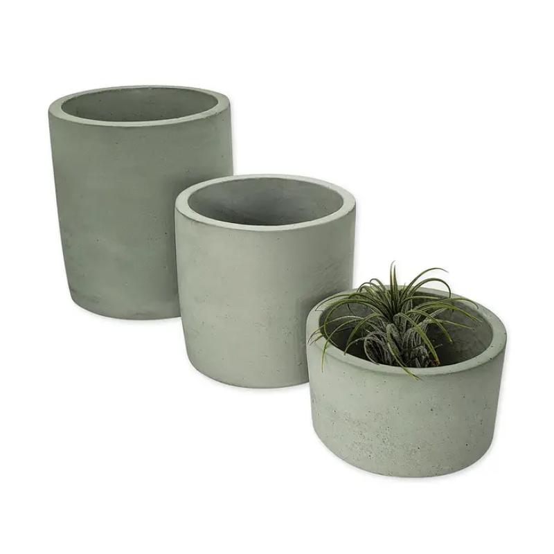 Product Details • Home Decor: pottery, planter, garden pot, succulent plant holder • Color: green • Size: small 1.75"h, medium 3"h, large 4"h • Diameter: small 3", medium 3.25", large 3.75" • Inner Diameter: small 2.75", medium 2.75", large 3.25" • Shape: round, bottom has drain hole • Material: natural cement stone • Function: holds air plants, succulents, cacti, flowers, herbs Features • Made in the USA • Sustainable material is sourced from the USA • Handmade plant holders created by USA artisans • Eco-friendly cement stone pottery holds holds air plants, cacti, succulents • Multi-purpose holders for plants, candles and organizing keepsakes • Lightweight and strong unglazed cement plant holders are durable • Modern distressed minimalist style • Perfect for indoor or outdoor use • Pot planters are paintable • Plant not included