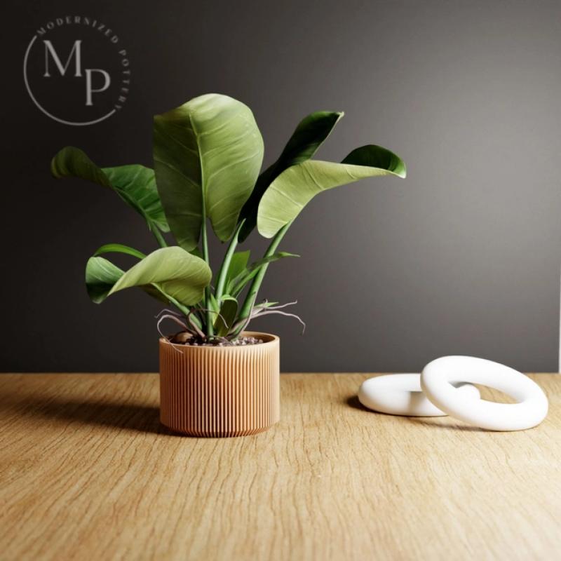 The SAKURA Planter, a testament to minimalist design. This distinctive planter incorporates gradient lines that rise and fall, creating a captivating visual experience.