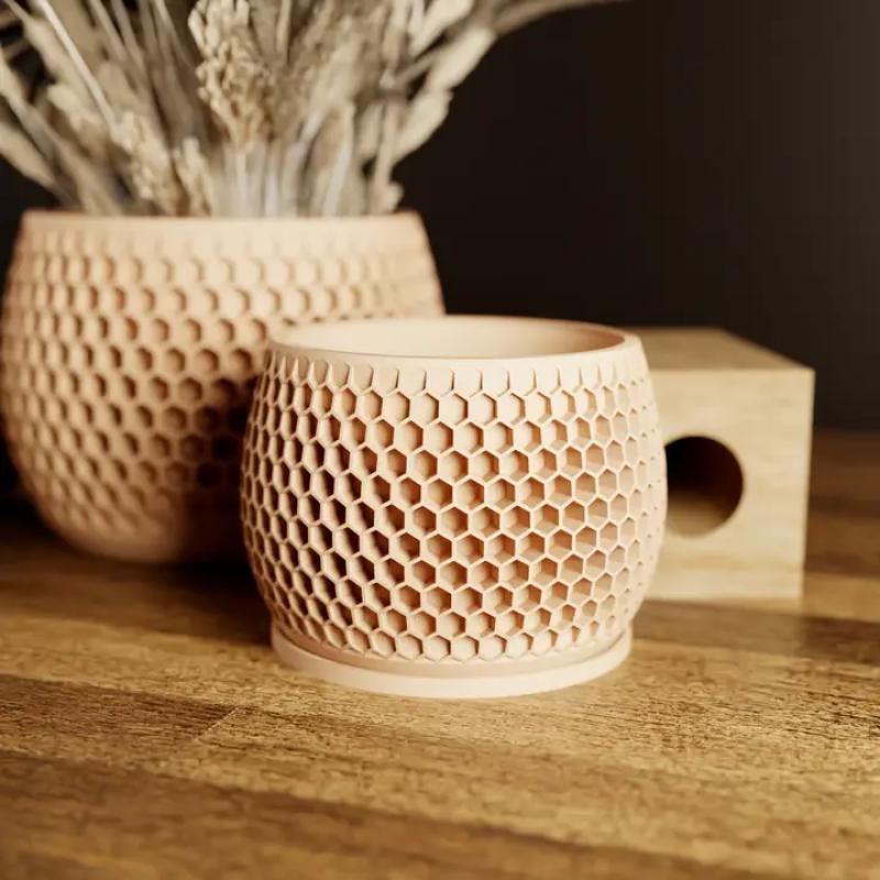 The Honeycomb Planter, inspired by nature, boasts a beehive-like texture, reflecting the efficiency of bees. Its elegant design adds sophistication to any space, complemented by its durable construction.