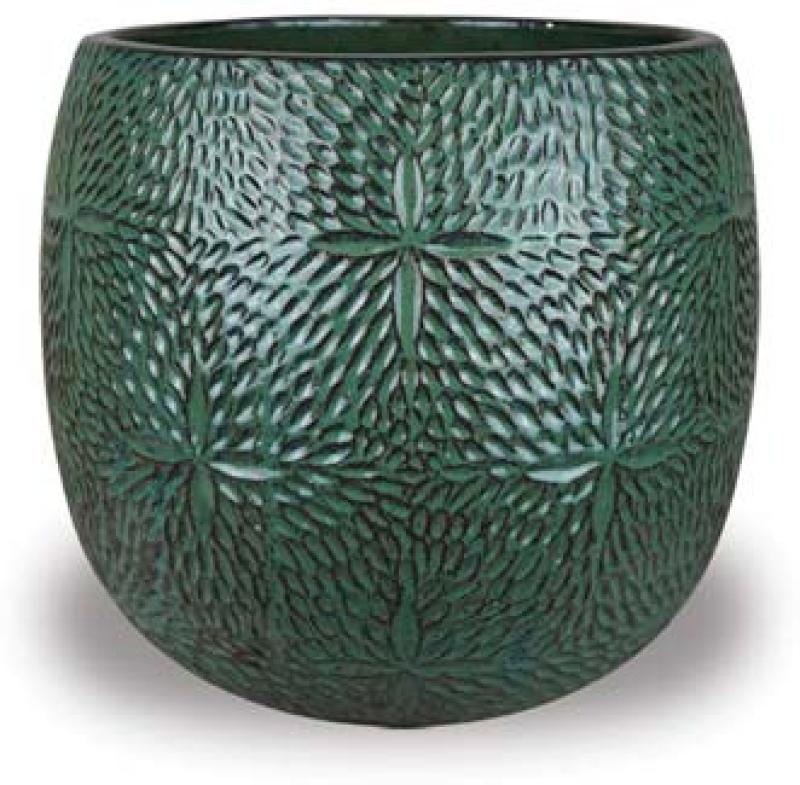 Round Planter With Flower Design L - 14 ¾ H x 16 w