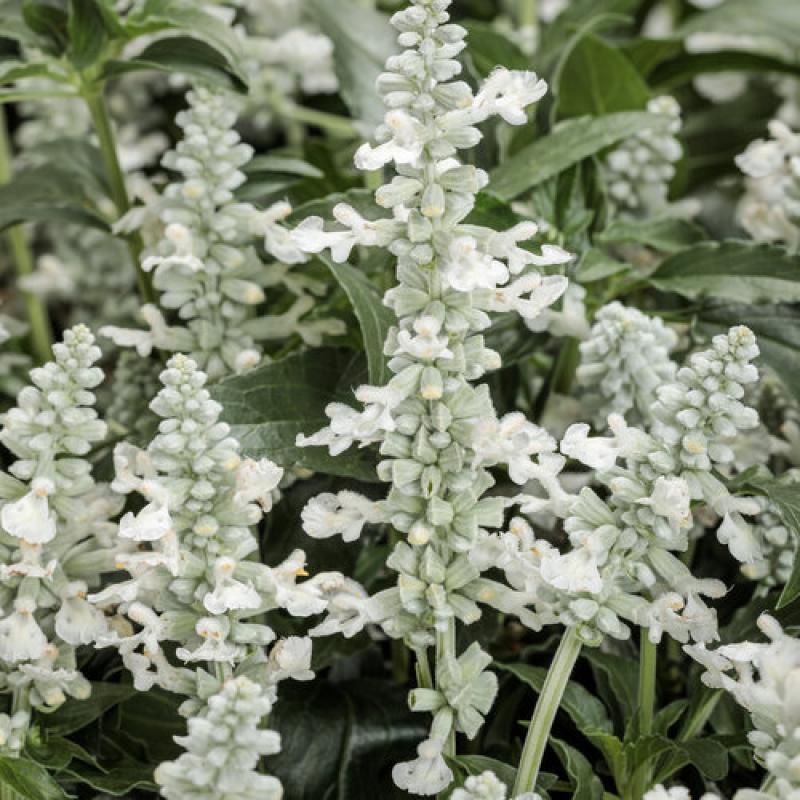 Salvia 'Mystic Spires' This is a compact version of another favorite, 'Indigo Spires'. It flaunts rich, deep blue flowers from spring until the first frost and requires very little care once established.