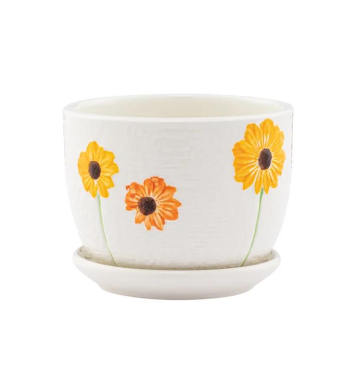 Ocher Pot W/saucer