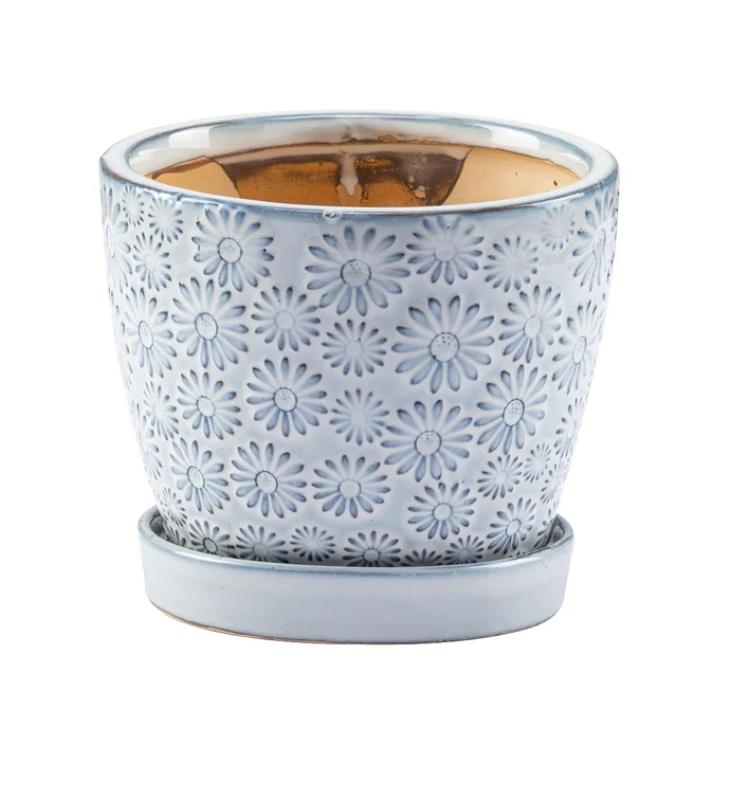 Palm Leaves Planter W/saucer While