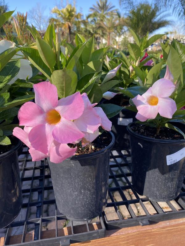 color in your landscape this summer by growing a Mandevilla vine up a trellis,