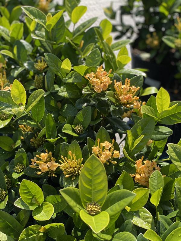 CharacteristicsOne of the best things about Ixora is that it flowers throughout the year! Each flower cluster can last between 6 and 8 weeks giving your landscape long-lasting and lovely color. Ixora varieties offer a nice selection of colors, including bright red, orange, yellow, pink, and white. The leaves of this tropical perennial are bronze when young and shift to glistening dark green as the plant ages. A compact, densely-branching shrub, Ixora is ideal for planting as a hedge, border, screen, or featured specimen—depending on which variety you select.