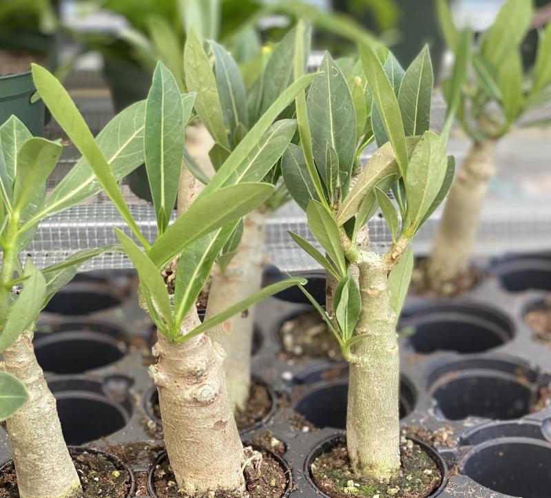 2. Flower Power: With trumpet-shaped flowers that burst in shades of pink, red, and white, it's an eye-catcher. Its thick base, known as a caudex, stores water, enabling the plant to thrive in dry conditions.