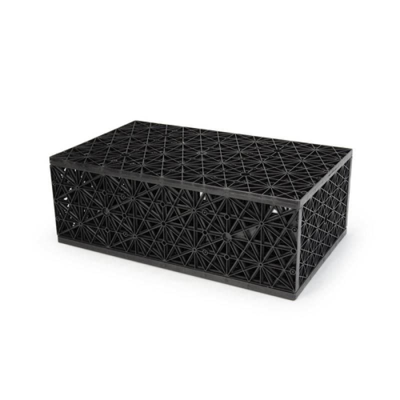 The Aquascape AquaBlox® Water Storage Module displaces water for use with Pondless Waterfall reservoirs, rainwater collection projects, and other various water feature applications. AquaBlox are manufactured using recycled materials and designed to efficiently maximize water storage capacity, providing the ability to hold more water with a smaller reservoir footprint. Each AquaBlox will hold approximately 7.4 gallons of water per cubic foot, allowing over 3 times the water storage capacity than gravel will provide. This extra storage capacity will mean less time needed to top off the reservoir due to evaporation. Using AquaBlox will also decrease the amount of labor, liner, and underlayment required during installation. The load-bearing top will support up to 5,472 pounds per square foot, providing years of trouble-free enjoyment and allowing for installation in a wide variety of situations. Aquascape AquaBlox are easier to clean, less prone to clogging, and come complete with the top, bottom, two sides and four structural supports.