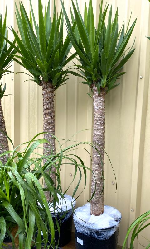 When it comes to watering, these plants are champions of drought tolerance. It's essential to let them dry out between waterings. The young Yucca plants, often referred to as 'Yucca bushes,' aren't bushes at all. As they mature, these plants can grow to the stature of trees, reaching impressive heights of 15-20 feet. While in 3-gallon pots, they might appear as rooted cuttings, they'll develop a trunk and branches over time, transforming into nature's spectacle.