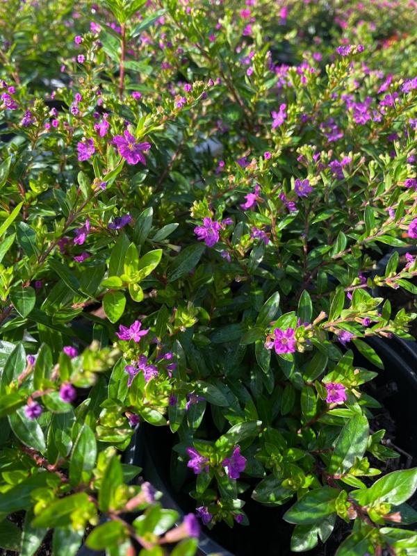 Cuphea 'Floriglory' (an award-winning variety of Mexican Heather): is a compact, semi-woody perennial shrub, low-growing, approximately 10-12 inches tall and wide. It features delicate, small purple, magenta, or white flowers and is often used as a bedding plant, and is a versatile addition to any garden setting. This charming plant is hardy in USDA zones 8-11, tolerating the North East Florida climate exceptionally well. It blooms prolifically year-round.