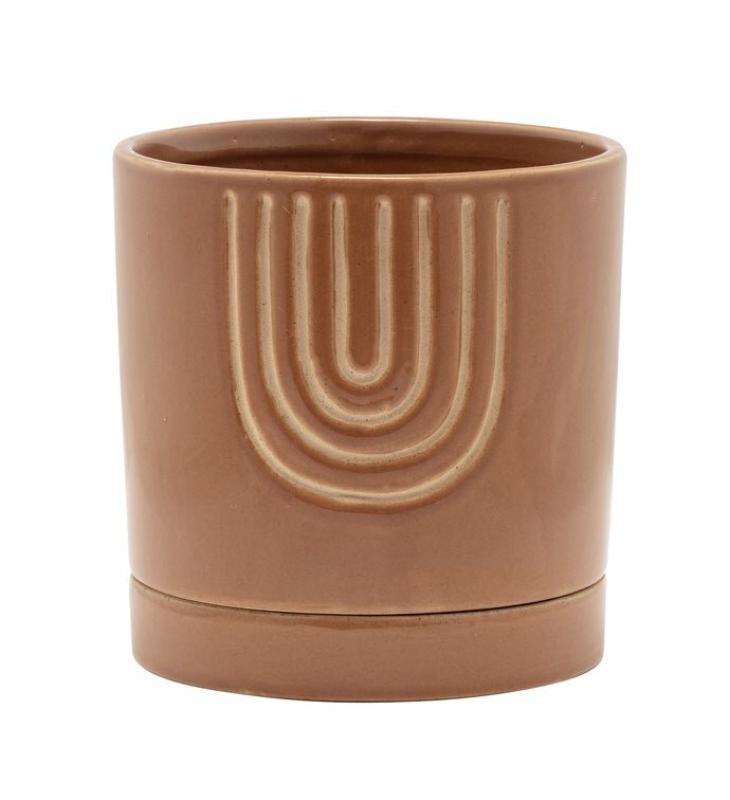 Ocher Pot W/saucer 4.75" H x 5" w x 5" L