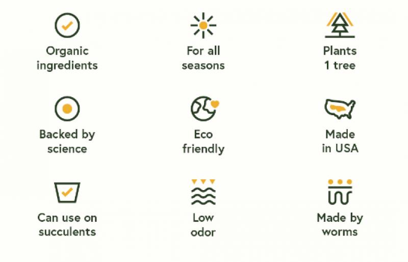 10 groups of beneficial fungi and 500 million microorganisms per tsp release into the soil to help plants better absorb nutrients. The fungi act as the plants ‘messenger', meaning your plant builds a symbiotic relationship with its soil. Enrich transforms your soil into a teeming ecosystem, ripe for growth!