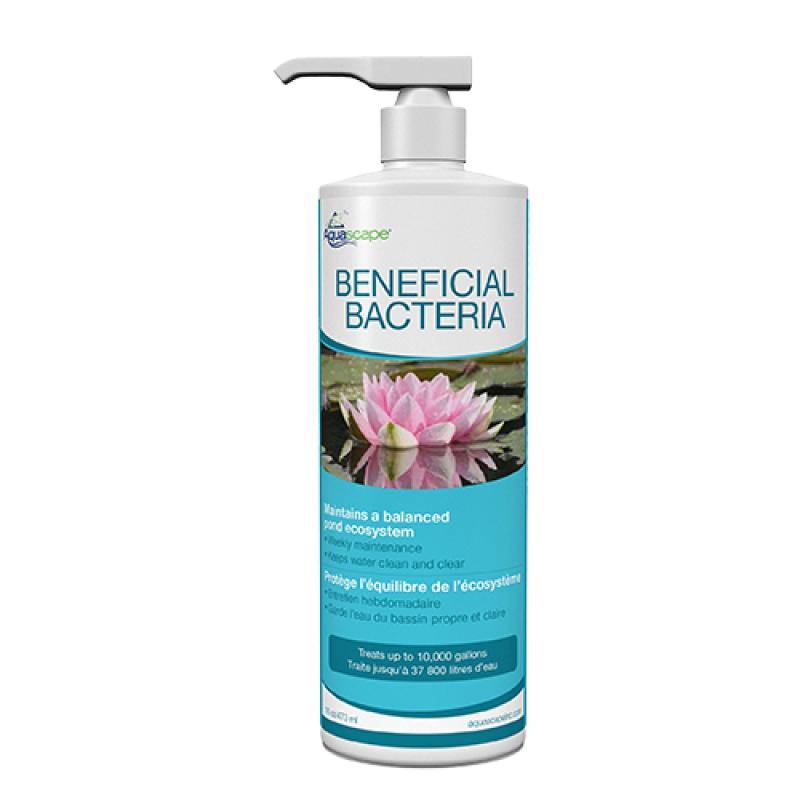 Aquascape Beneficial Bacteria is a liquid water treatment that helps to provide clean, clear, and healthy water conditions, significantly reducing pond maintenance. Each bottle of Beneficial Bacteria is packed full of eight pure strains of concentrated beneficial bacteria and is completely safe for fish, plants, pets, and wildlife. Our Beneficial Bacteria effectively reduces fish waste, organic plant material, sludge, and excess nutrients in your pond, allowing you to spend more time enjoying your water feature and less time maintaining it. Our bacteria contains a 1.5 billion CFU per ounce potency, ensuring consistently effective treatment, and the included marigold and vitamin B help to bring out the natural colors of your fish while maintaining proper fish health.