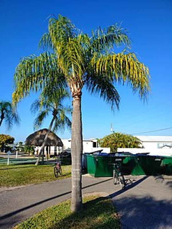 The Queen palm boasts a suite of desirable traits for a landscape palm, including a dignified tropical aesthetic, rapid growth, and moderate tolerance to cold, drought, and salt air. Its smooth gray trunk and long, flowing fronds resembling feathery plumes make the Queen palm a crowd favorite in Florida landscapes.