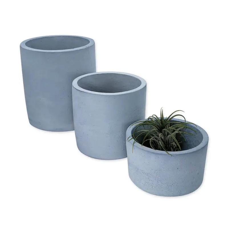 Product Details • Home Decor: pottery, planter, garden pot, succulent plant holder • Color: green • Size: small 1.75"h, medium 3"h, large 4"h • Diameter: small 3", medium 3.25", large 3.75" • Inner Diameter: small 2.75", medium 2.75", large 3.25" • Shape: round, bottom has drain hole • Material: natural cement stone • Function: holds air plants, succulents, cacti, flowers, herbs Features • Made in the USA • Sustainable material is sourced from the USA • Handmade plant holders created by USA artisans • Eco-friendly cement stone pottery holds holds air plants, cacti, succulents • Multi-purpose holders for plants, candles and organizing keepsakes • Lightweight and strong unglazed cement plant holders are durable • Modern distressed minimalist style • Perfect for indoor or outdoor use • Pot planters are paintable • Plant not included