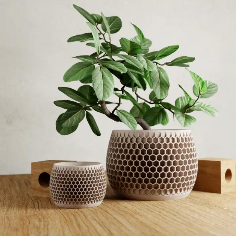The Honeycomb Planter, inspired by nature, boasts a beehive-like texture, reflecting the efficiency of bees. Its elegant design adds sophistication to any space, complemented by its durable construction.