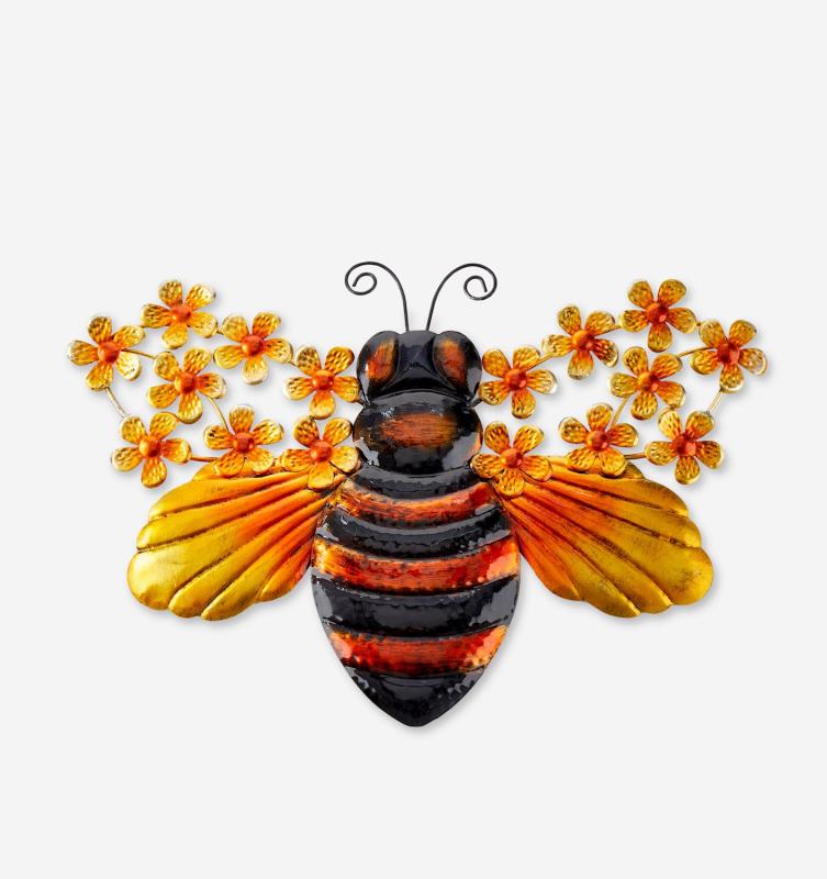 Bring the best of garden nature onto your walls with this Floral Bee Wall Decor. Sculpted beautifully from metal in the shape of a bumble bee, this charming accent will brighten up any space with its vibrant black, gold, and orange hues and floral motifs. Metal.