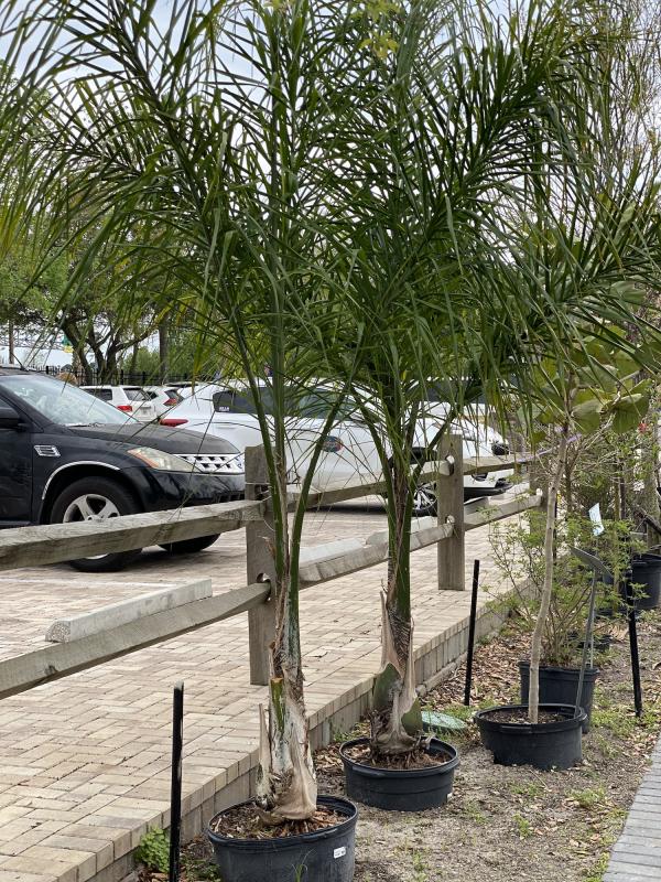 The Queen palm boasts a suite of desirable traits for a landscape palm, including a dignified tropical aesthetic, rapid growth, and moderate tolerance to cold, drought, and salt air. Its smooth gray trunk and long, flowing fronds resembling feathery plumes make the Queen palm a crowd favorite in Florida landscapes.
